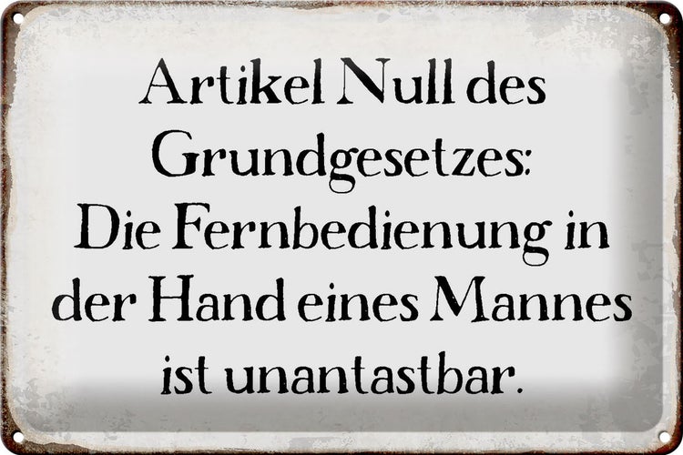 - TitelBlechschild Spruch 30x20cm Fernbedienung in der Hand Mannes [ORIGINAL BLECHSCHILD von FEMER]