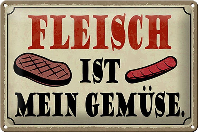 - TitelBlechschild Spruch 30x20cm Fleisch ist mein Gemüse Grill [ORIGINAL BLECHSCHILD von FEMER]