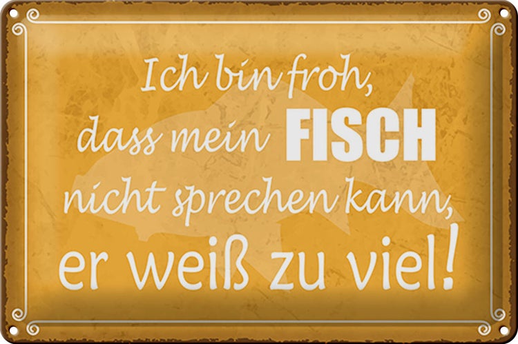 - TitelBlechschild Spruch 30x20cm froh mein Fisch nicht sprechen [ORIGINAL BLECHSCHILD von FEMER]