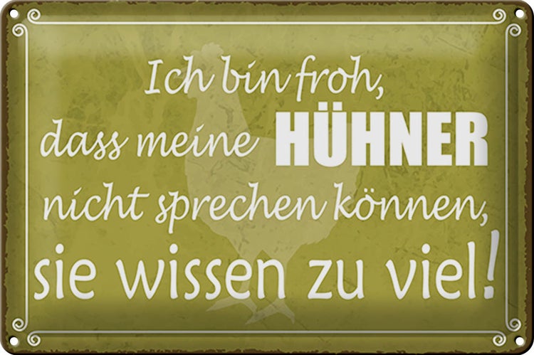Blechschild Spruch 30x20cm froh meine Hühner nicht sprechen
