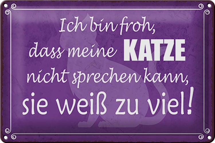 Blechschild Spruch 30x20cm froh meine Katze nicht sprechen