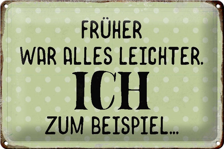 - TitelBlechschild Spruch 30x20cm früher war alles leichter [ORIGINAL BLECHSCHILD von FEMER]