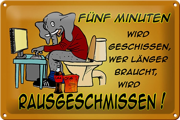 - TitelBlechschild Spruch 30x20cm fünf Minuten wird geschissen Elefant [ORIGINAL BLECHSCHILD von FEMER]