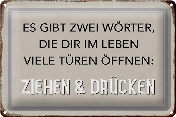 Blechschild Spruch 30x20cm gibt zwei Wörter Ziehen Drücken