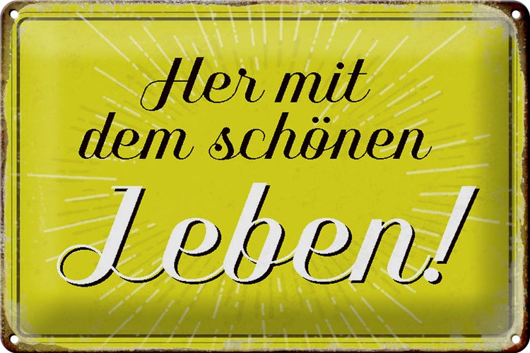 - TitelBlechschild Spruch 30x20cm Her mit dem schönen Leben [ORIGINAL BLECHSCHILD von FEMER]