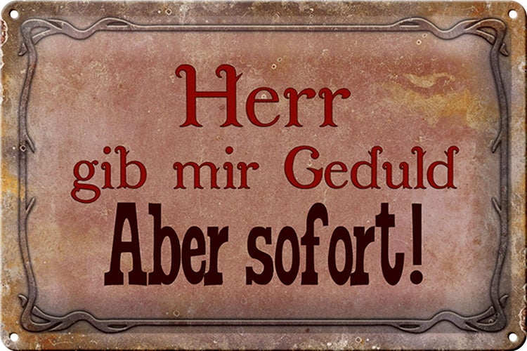 - TitelBlechschild Spruch 30x20cm Herr gib mir Geduld aber sofort [ORIGINAL BLECHSCHILD von FEMER]