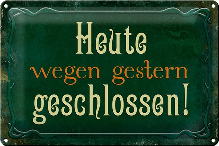 - TitelBlechschild Spruch 30x20cm Heute wegen gestern geschlossen [ORIGINAL BLECHSCHILD von FEMER]