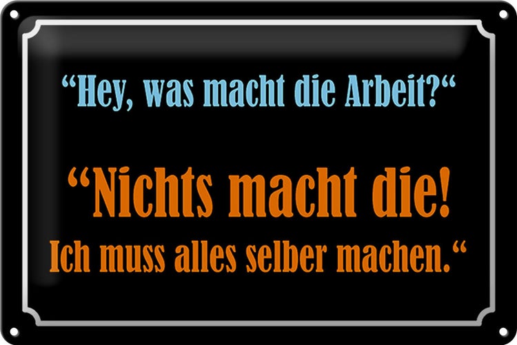 - TitelBlechschild Spruch 30x20cm Hey was macht die Arbeit [ORIGINAL BLECHSCHILD von FEMER]