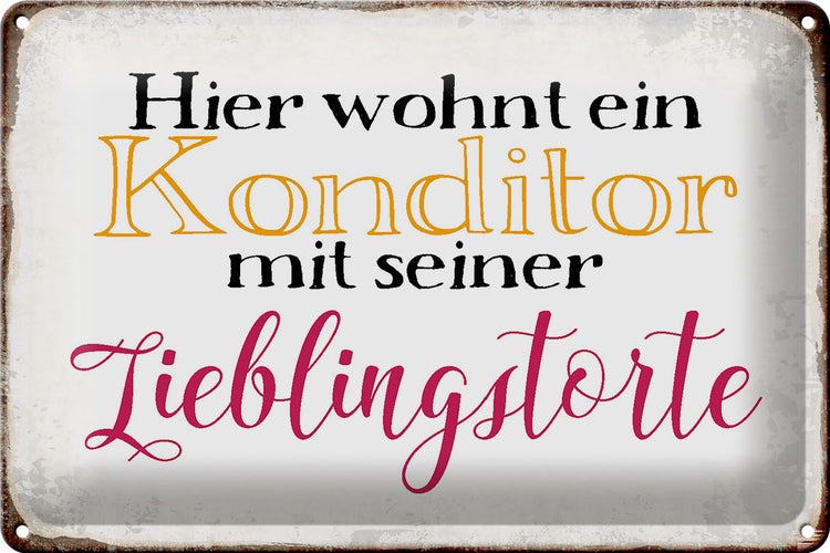 - TitelBlechschild Spruch 30x20cm hier Konditor mit Lieblingstorte [ORIGINAL BLECHSCHILD von FEMER]