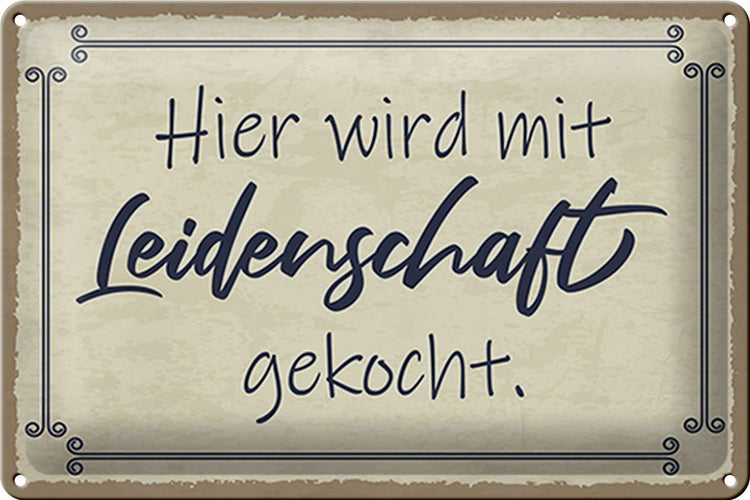 - TitelBlechschild Spruch 30x20cm hier mit Leidenschaft gekocht [ORIGINAL BLECHSCHILD von FEMER]