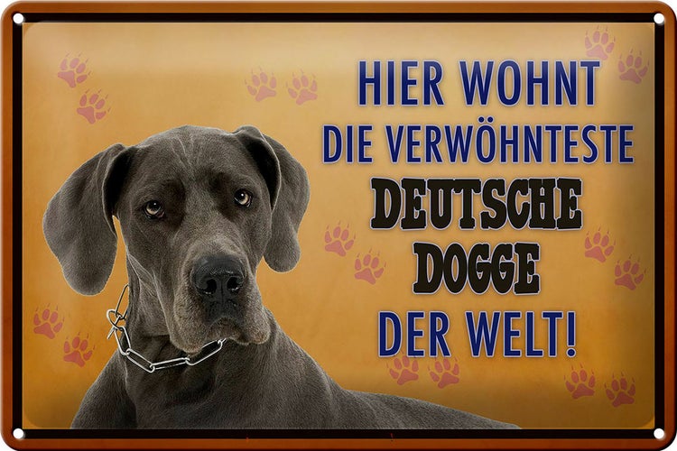 - TitelBlechschild Spruch 30x20cm Hund hier wohnt Deutsche Dogge [ORIGINAL BLECHSCHILD von FEMER]