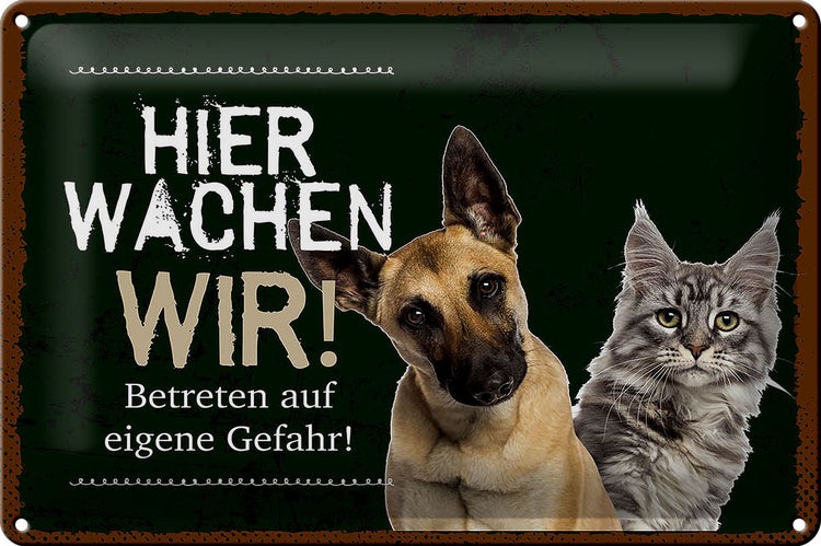 - TitelBlechschild Spruch 30x20cm Hund Katze hier wachen wir schwarzes Schild [ORIGINAL BLECHSCHILD von FEMER]