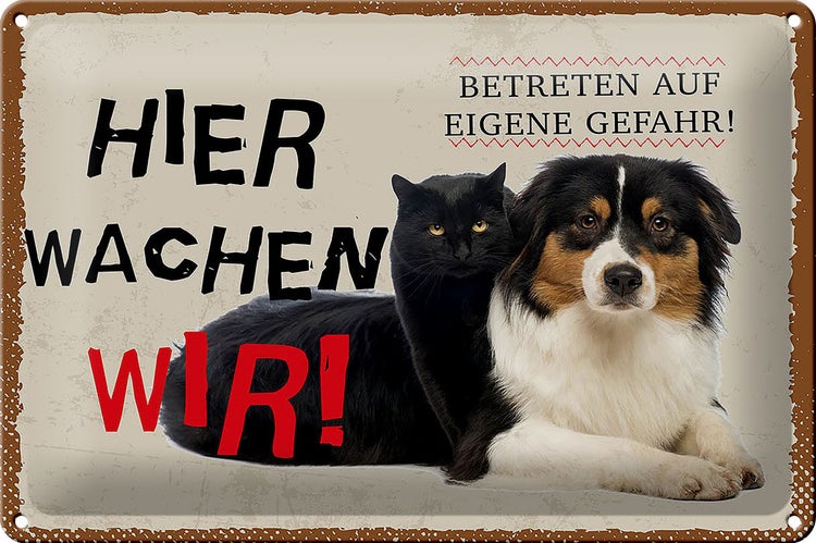 - TitelBlechschild Spruch 30x20cm Hund Katze hier wachen wir [ORIGINAL BLECHSCHILD von FEMER]