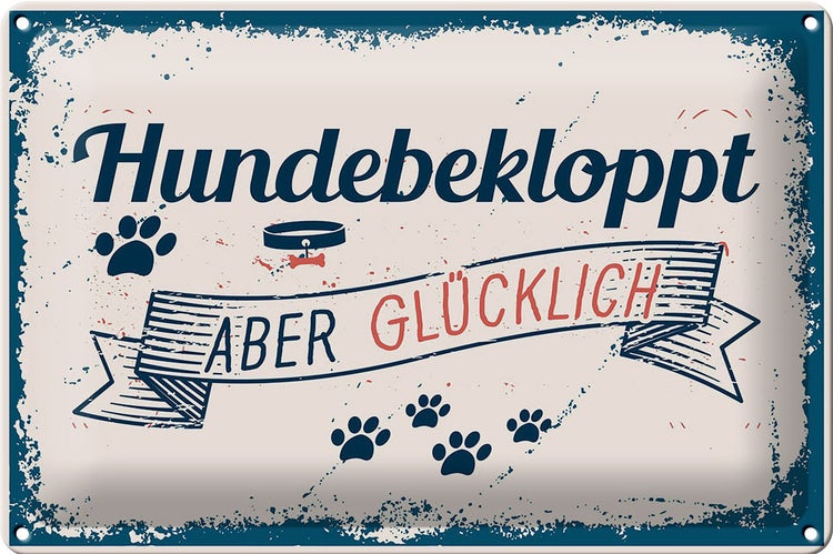 - TitelBlechschild Spruch 30x20cm Hundebekloppt aber Glücklich blau [ORIGINAL BLECHSCHILD von FEMER]