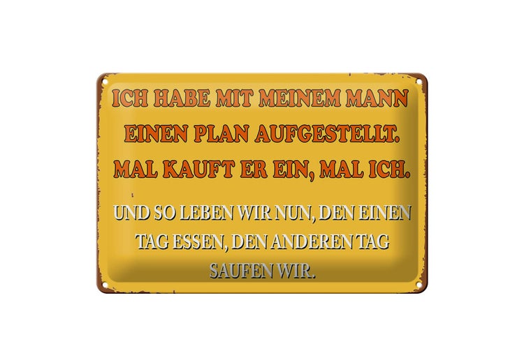 - TitelBlechschild Spruch 30x20cm ich habe mit meinem Mann Plan [ORIGINAL BLECHSCHILD von FEMER]