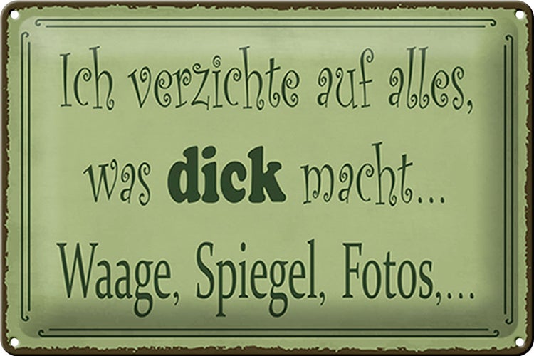 - TitelBlechschild Spruch 30x20cm ich verzichte Waage Spiegel Foto [ORIGINAL BLECHSCHILD von FEMER]
