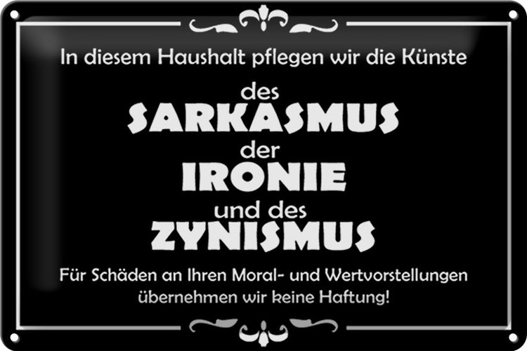 - TitelBlechschild Spruch 30x20cm In diesem Haushalt Sarkasmus [ORIGINAL BLECHSCHILD von FEMER]