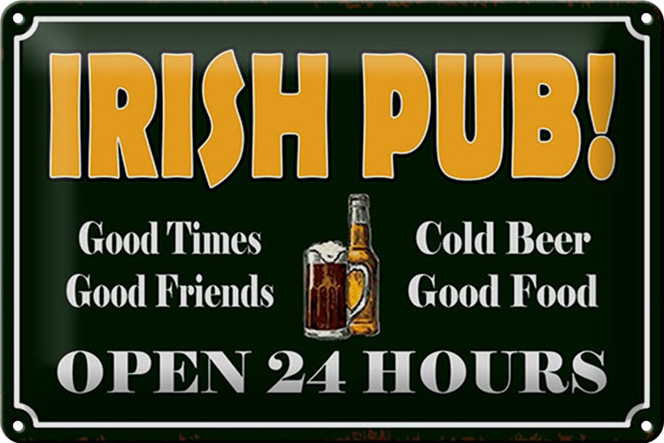 Blechschild Spruch 30x20cm Irish Pub gold Beer open 24