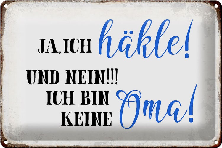 - TitelBlechschild Spruch 30x20cm ja ich häkle und bin keine Oma [ORIGINAL BLECHSCHILD von FEMER]