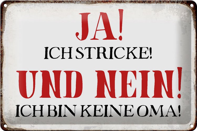 - TitelBlechschild Spruch 30x20cm ja ich stricke nein keine Oma [ORIGINAL BLECHSCHILD von FEMER]