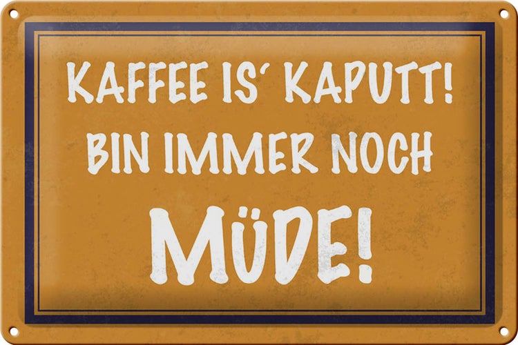 - TitelBlechschild Spruch 30x20cm Kaffee is kaputt bin müde [ORIGINAL BLECHSCHILD von FEMER]