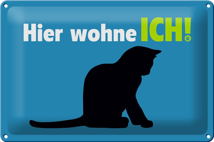 - TitelBlechschild Spruch 30x20cm Katze hier wohne ich blau [ORIGINAL BLECHSCHILD von FEMER]