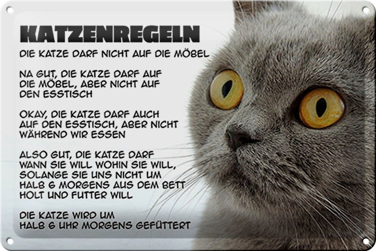 - TitelBlechschild Spruch 30x20cm Katzenregeln Katze darf nicht [ORIGINAL BLECHSCHILD von FEMER]