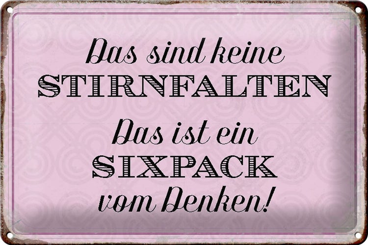- TitelBlechschild Spruch 30x20cm keine Stirnfalten ist Sixpack [ORIGINAL BLECHSCHILD von FEMER]