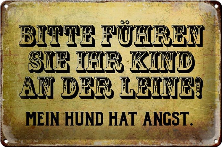 - TitelBlechschild Spruch 30x20cm Kinder an der Leine Hund Angst [ORIGINAL BLECHSCHILD von FEMER]