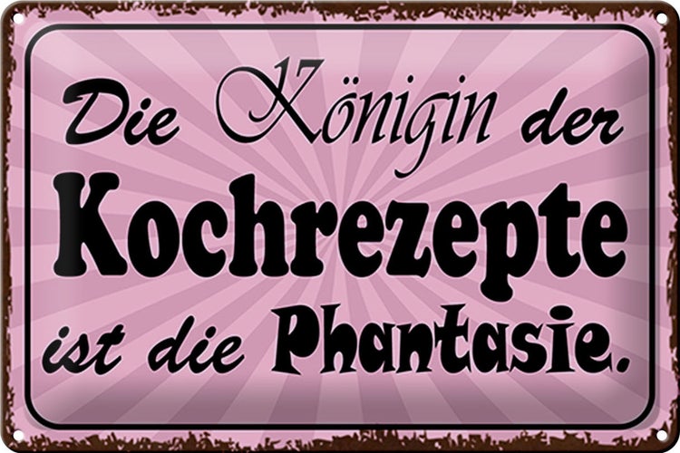 - TitelBlechschild Spruch 30x20cm Königin Kochrezepte Phantasie rosa [ORIGINAL BLECHSCHILD von FEMER]