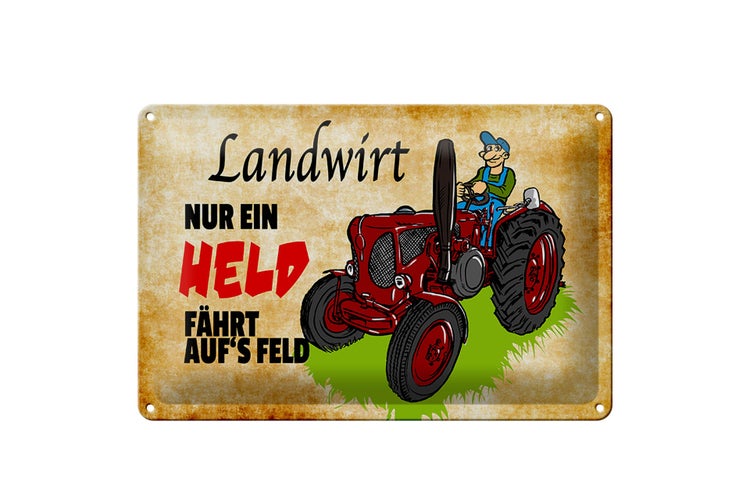 - TitelBlechschild Spruch 30x20cm Landwirt nur ein Held fährt [ORIGINAL BLECHSCHILD von FEMER]