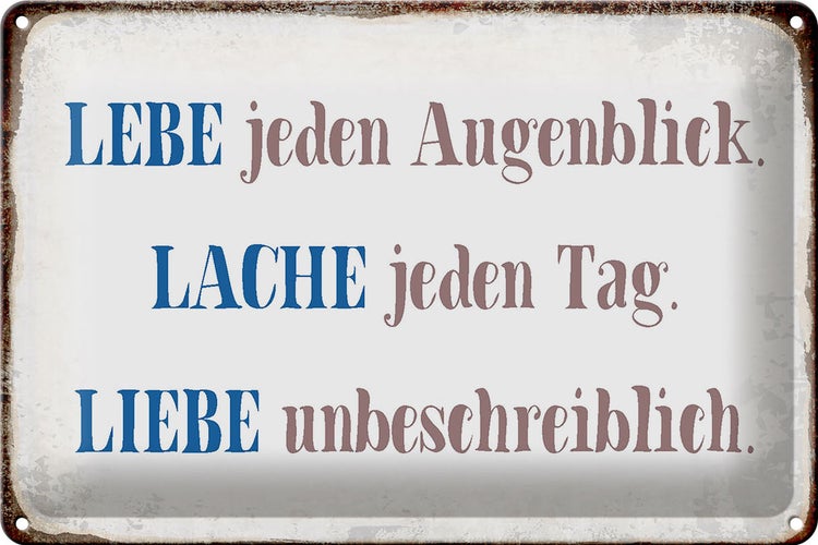 Blechschild Spruch 30x20cm liebe lache jeden Tag Schild