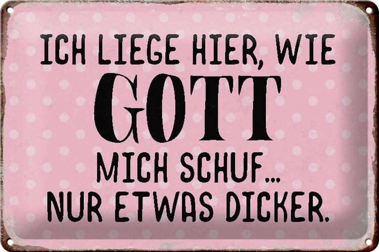 - TitelBlechschild Spruch 30x20cm liege hier wie Gott mich schuf [ORIGINAL BLECHSCHILD von FEMER]