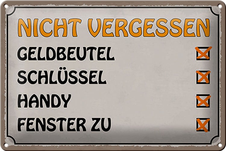 - TitelBlechschild Spruch 30x20cm Liste nicht vergessen Geldbeutel [ORIGINAL BLECHSCHILD von FEMER]