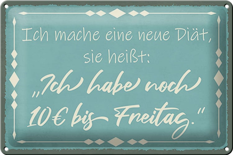 - TitelBlechschild Spruch 30x20cm mache Diät noch 10€ bis Freitag [ORIGINAL BLECHSCHILD von FEMER]
