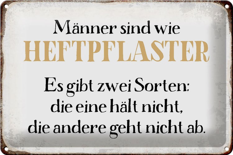 Blechschild Spruch 30x20cm Männer sind wie Heftpflaster