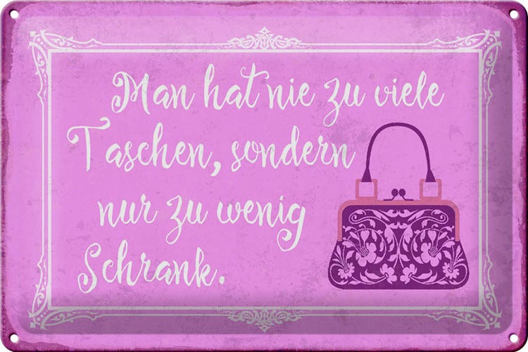 - TitelBlechschild Spruch 30x20cm man hat nie zu viele Taschen [ORIGINAL BLECHSCHILD von FEMER]