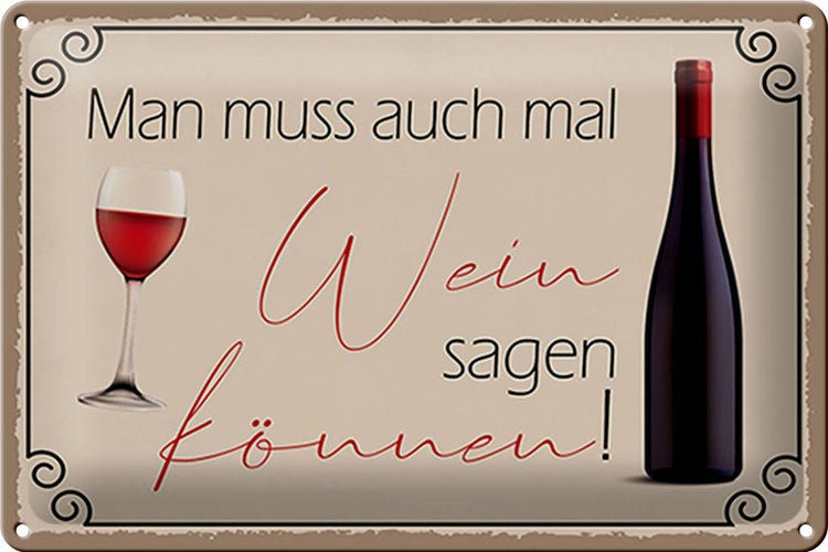 - TitelBlechschild Spruch 30x20cm Man muss mal Wein sagen können [ORIGINAL BLECHSCHILD von FEMER]