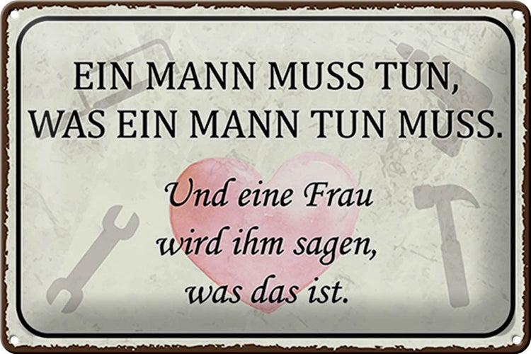 Blechschild Spruch 30x20cm Mann muss tun Frau wird sagen