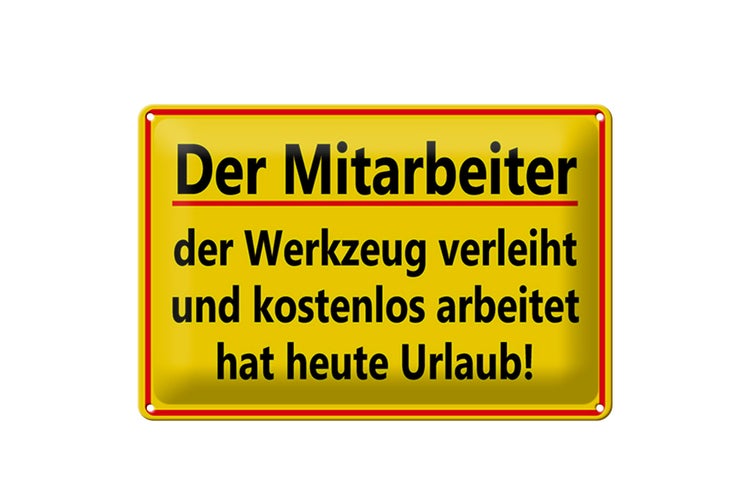 - TitelBlechschild Spruch 30x20cm Mitarbeiter Werkzeug verleiht [ORIGINAL BLECHSCHILD von FEMER]