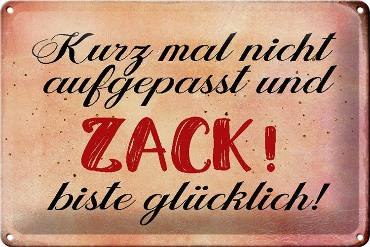 - TitelBlechschild Spruch 30x20cm nicht aufgepasst und glücklich [ORIGINAL BLECHSCHILD von FEMER]