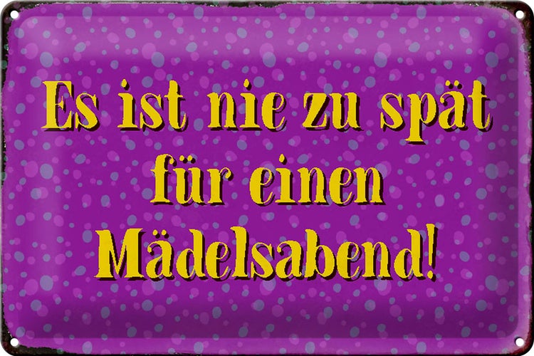 - TitelBlechschild Spruch 30x20cm nie zu spät für Mädelsabend [ORIGINAL BLECHSCHILD von FEMER]