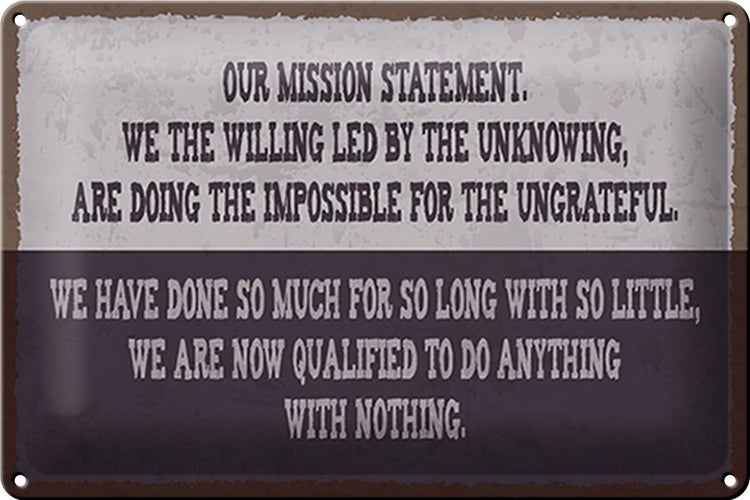 - TitelBlechschild Spruch 30x20cm our mission statement we the [ORIGINAL BLECHSCHILD von FEMER]