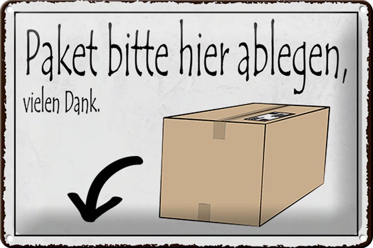 - TitelBlechschild Spruch 30x20cm Paket bitte hier ablegen vielen Dank [ORIGINAL BLECHSCHILD von FEMER]