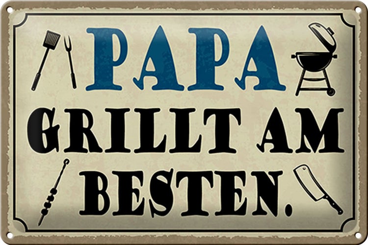 - TitelBlechschild Spruch 30x20cm Papa grillt am besten [ORIGINAL BLECHSCHILD von FEMER]