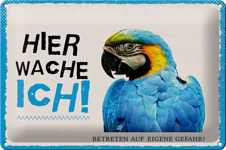 Blechschild Spruch 30x20cm Papagei hier wache ich eigene Gefahr