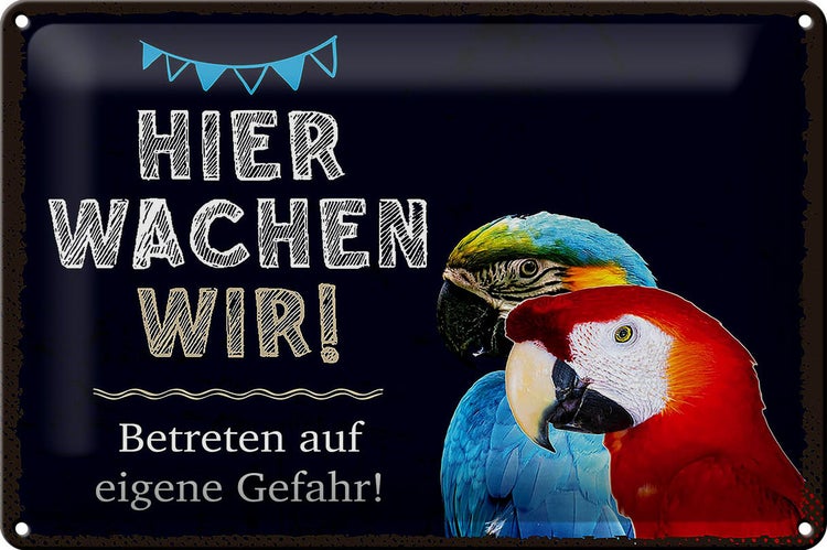 - TitelBlechschild Spruch 30x20cm Papageien hier wachen wir [ORIGINAL BLECHSCHILD von FEMER]