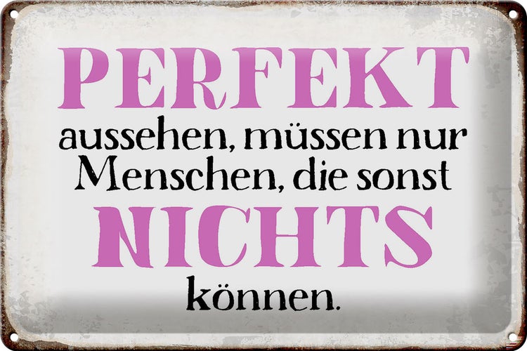 - TitelBlechschild Spruch 30x20cm perfekt aussehen nichts können [ORIGINAL BLECHSCHILD von FEMER]