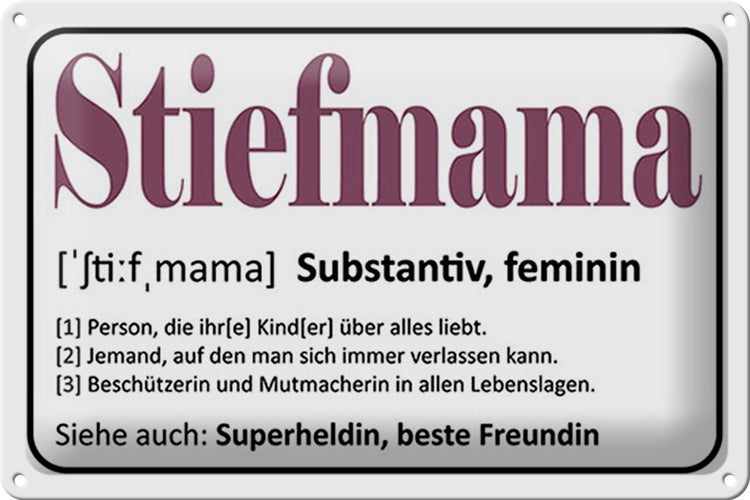 - TitelBlechschild Spruch 30x20cm Stiefmama Superheldin Freundin [ORIGINAL BLECHSCHILD von FEMER]