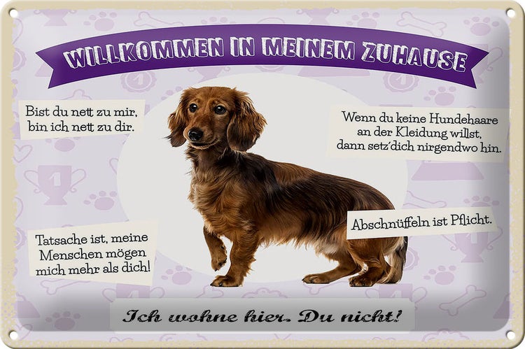 - TitelBlechschild Spruch 30x20cm Tiere Dackel willkommen wohne hier [ORIGINAL BLECHSCHILD von FEMER]